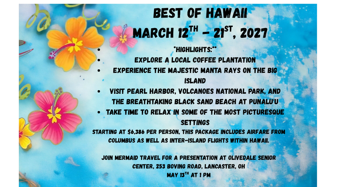 No matter where you go, whether it’s a long weekend get-away or a dream vacation, travel changes you. It gives you the chance to learn about different cultures, have new experiences, gain new perspectives, and see the world through new eyes. The goal and passion of Mermaid Travel is to connect people with the world - the world outside of your community and the world outside of your country.